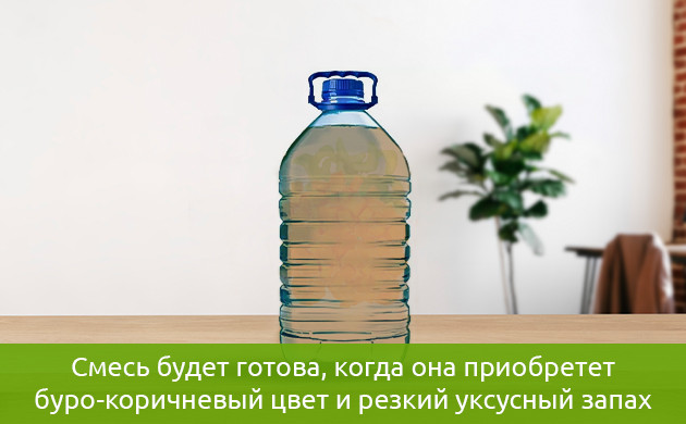 - Смесь будет готова, когда она приобретет буро-коричневый цвет и резкий уксусный запах.