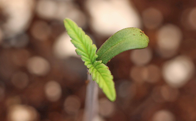 За вторую неделю плюс еще одна пара листьев. По росту уже чуть меньше 5 см. Заметил, что листва Purple Juice Auto имеет какую-то странную форму. Она закручивается к краям и имеет бугристую поверхность по всей площади. Если глянуть со стороны, то можно вообще подумать, что это не каннабис, а какой-то одуванчик.