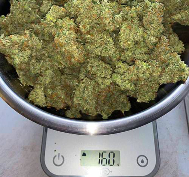 Процесс уборки урожая и тримминга был довольно проблематичным из-за того, что соцветия очень плотные и липкие. После мокрого трима на весах было 679 грамм бутонов, которые были отправлены на неспешную сушку, а затем на пролечку. Итоговый результат – 160 грамм готового продукта.