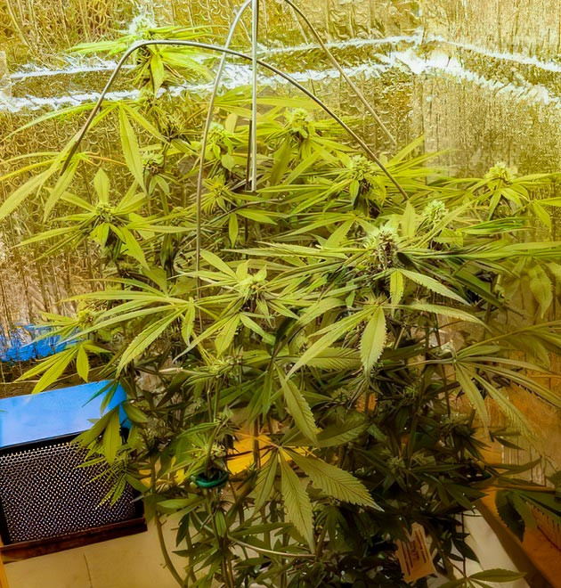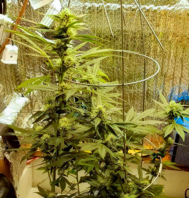 На 16-й неделе установил простые садовые опоры, к ним часто подвязывают, например, помидоры. Удобная и полезная штука, не дает ветвям распадаться в стороны и держит их в более-менее одной плоскости. На соцветиях начали появляться трихомы, хоть сами они еще довольно компактные. В боксе устойчивый аромат, достаточно резкий. Его тяжело описать, какая-то смесь кисло-бензиново-травянистых тонов.