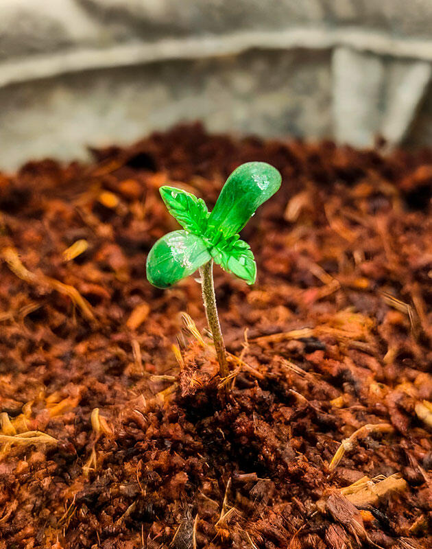 В качестве промежуточного этапа выбрал торфяную таблетку. Там мой Дракончик провел еще три дня, после чего отправился в конечный десятилитровый горшок, заполненный буферизированным кокосом. Бодрый старт без каких-либо отклонений от курса.
