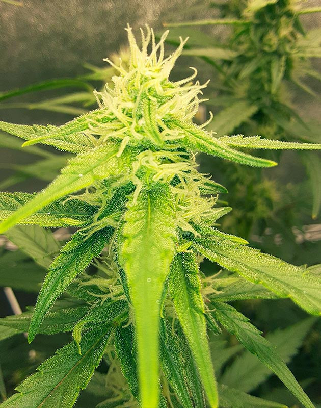 На восьмой неделе заметил на листве коричневые точки. Судя по всему, 100 % базовых удобрений + добавки – это слишком много для Black Jack. Поэтому при следующей подкормке использовал 75 % базы, исключил B-52 и Armor Si, но добавил в компот Terpinator. В остальном никаких проблем, девочка еще немного вытянулась до 90 сантиметров. Шишки начинают набухать и покрываться трихомами. В боксе стоит невероятно сильный запах.