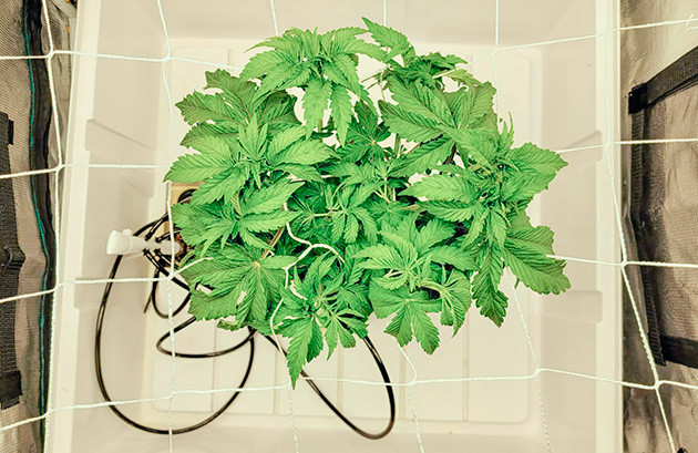 К середине восьмой недели куст был густой, широкий и невысокий, мечта индорщика. Всю неделю гнул макушки специальными клипсами для LST, чтобы переводить растение в цвет с максимальным количеством точек формирования соцветий. Получилось как нельзя лучше! Кустик начал пахнуть, пока аромат просто конопляный, ничего особенного.