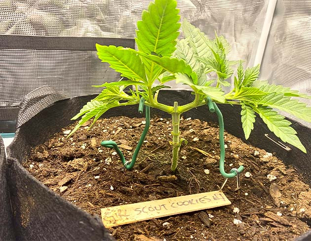 Второй росток, к сожалению, погиб. Считаю, что все-таки проблема заключалась в излишке питательных веществ. Поэтому для перестраховки я еще раз пересадил первый росток в еще больший горшок. Помимо этого, я подрезал верхушку, а также прибегнул к реализации техники мейн лининга. Высота растишки на данном этапе составляла 16 сантиметров.