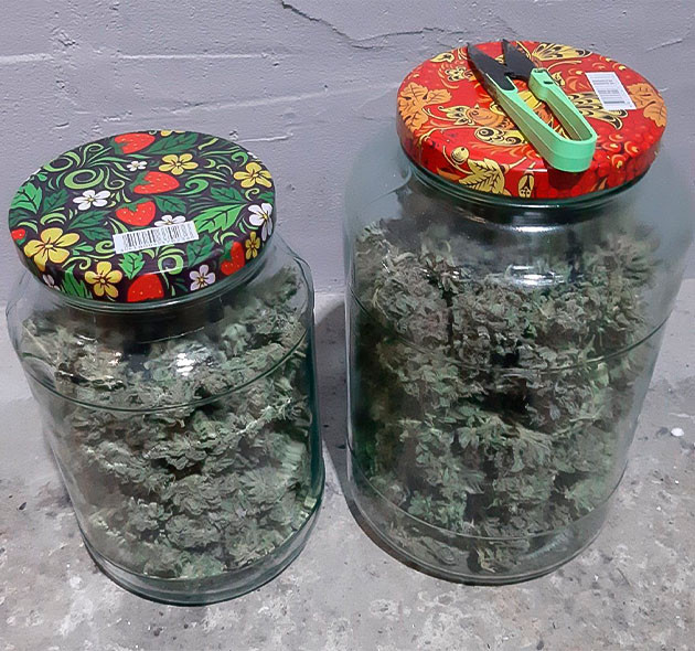 Немного мелких шишек домой взял посушить на пробу. Ветки я развесил на верёвочке в смежном с боксами помещении, температура 20 °C, влажность 50 %. Шишки срезанной девчонки провисели у меня около 6 суток, после чего я их снял в банки, получилось около 5 литров.
