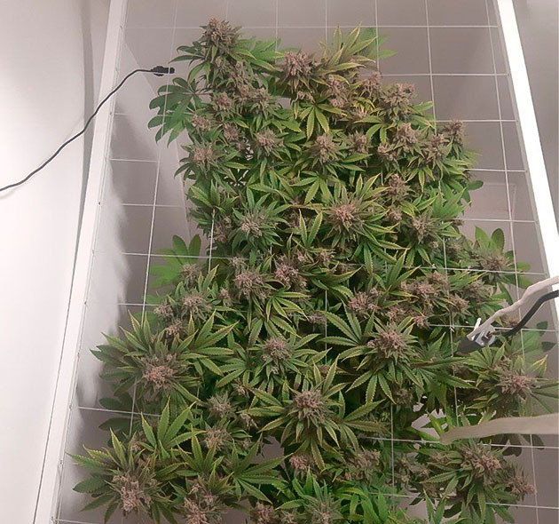 Скоро уже закончится предцвет и начнётся цветение. Подрастянул отросшие ветки под сеткой и убавил влажность в боксе до 40-45 %. День 82/13, полил 3 литрами своей чистой воды, понизив её рН до 6,5.
