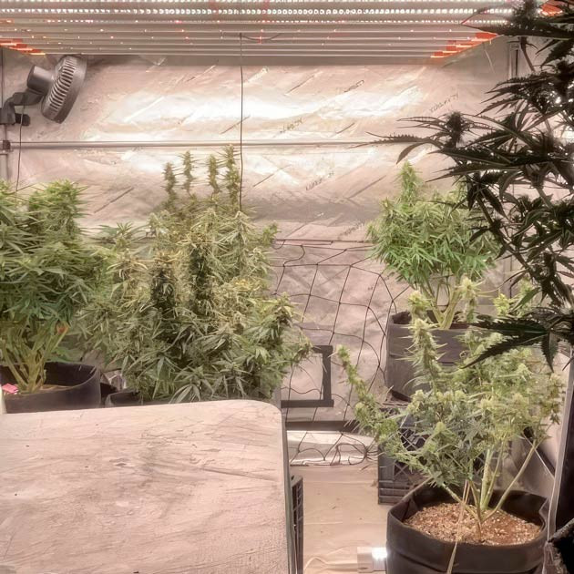 56-й день. Регулярная обрезка и дефолиация этих девушек в их последние дни. Несколько моментов относительно роста, которые стоит отметить. Освещение под кроной не лучшая идея. У меня были бутоны в нижней части, и они довольно хорошо развивались, но в итоге я все равно их обрезал, чтобы улучшить приток питательных веществ к верхней части. Растения созревают с разной скоростью, поэтому я кормлю их соответственно. Одна девушка уже в режиме промывки только потому, что она выглядела практически готовой к харвесту, и я не хотел ее передерживать. Остальные получат 1 или 2 кормления с соответствующим питанием, после чего также уйдут на промывку.