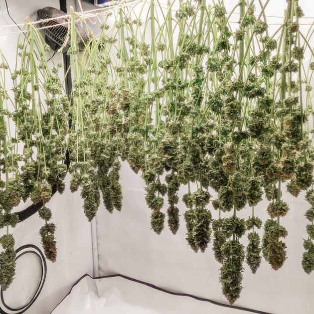 Мой самый масштабный гровинг в технике «Море зелени» с Mac n’ Jack R1 от ETHOS Genetics подошел к концу. После многочасового тримминга все 24 куста были подвешены вверх ногами и оставлены сушиться в боксе при 24 градусах и 50 % влажности. Изначальный мокрый вес составил 2083,3 г, а после недельной сушки и отделения шишек от стеблей у меня получилось 499,9 г. Самую малость не дотянул до половины килограмма.