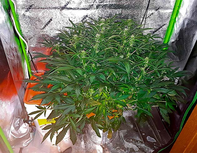 Десятая неделя принесла значительные изменения в структуре куста. Он перестал тянуться, и началось полноценное формирование соцветий. Шишки очень быстро приобрели форму и продолжали набирать массу. Отдельно отмечу усилившийся аромат в палатке. Запах конопляный, никаких намеков на другие мотивы. Чистый аромат конопли, довольно резкий и стойкий. Представьте, как пахнет каннабис. Представили? Вот так и пахнет в палатке Northern Lights.