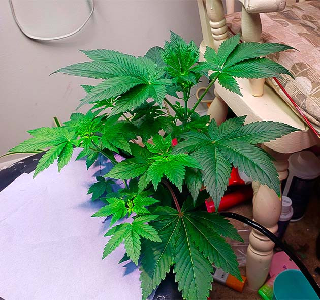 Отличная неделя! Больше никакой корневой гнили, поэтому кустик начал расти, достигнув высоты в 25 сантиметров. Мы немного отстаем от графика, но такое иногда случается.