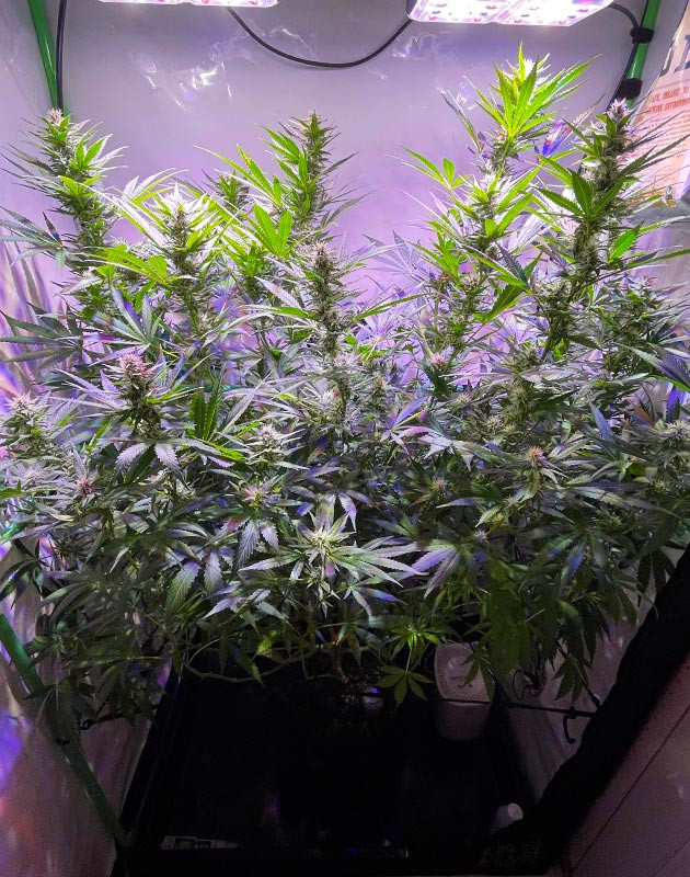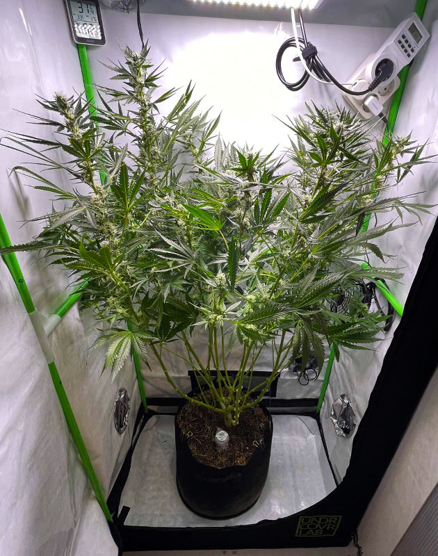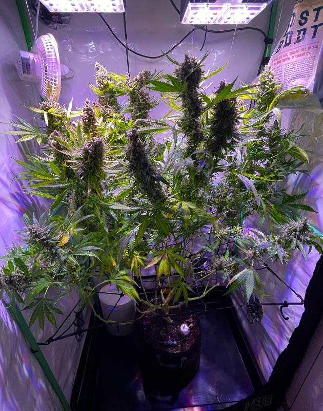 В середине 12-й недели я получил тент побольше, так как тот, в котором стояла вторая девочка, был слишком маленький. Теперь ей предстоял еще один переезд. Сначала перенёс всё оборудование, затем аккуратно снял сетку и переставил горшок с растением в новый тент. Обошлось без происшествий. Обе девочки начали полноценно цвести, набирая массу бутонов.