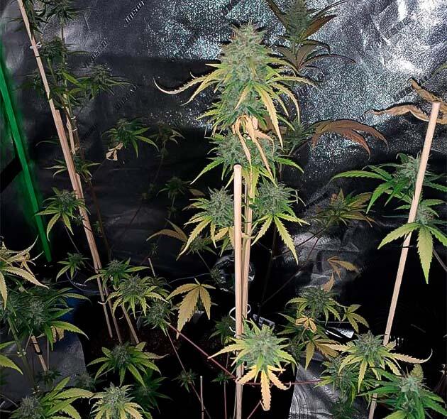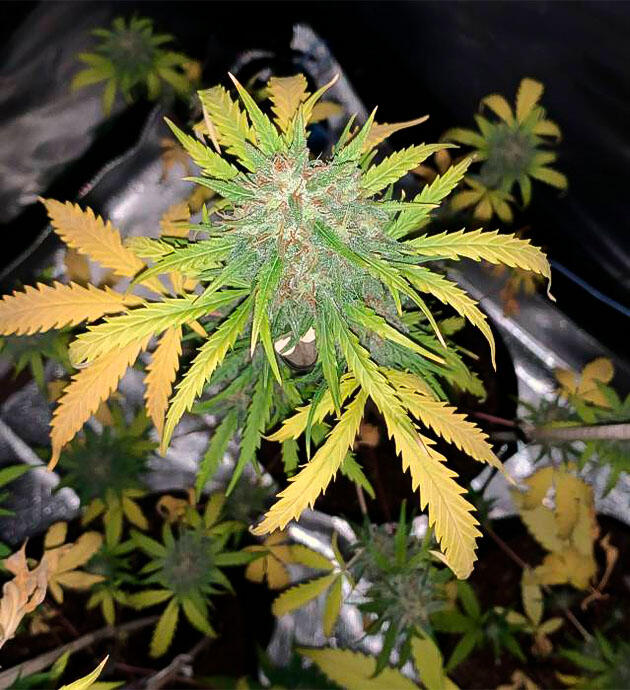 При том что я полностью отказался от удобрений, листья все еще продолжают желтеть. Я подумал о том, что это может быть связано не с проблемами питания, а с фактическим приближением к харвесту. Говорят же, что некоторые сорта очень сильно меняют цвет, теряя насыщенность красок. Короче, я вернул питание, но уже в половинной дозе.