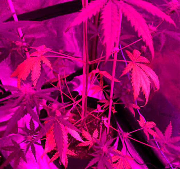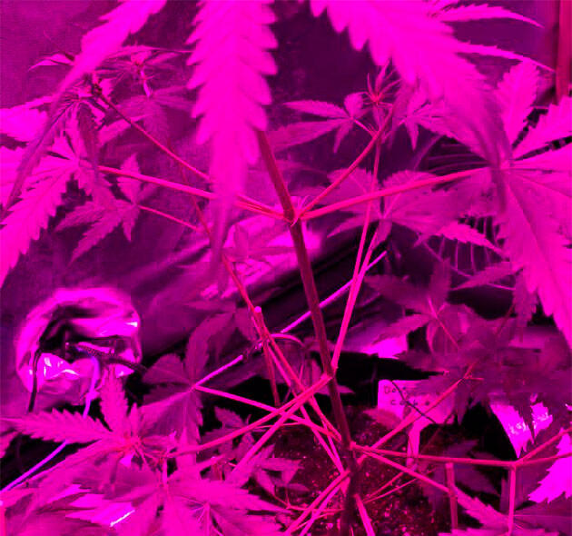 Набор высоты продолжается. Dos-Si-Dos Cookies Autoflower движется без тормозов, и он уже 55 см ростом. За последние пару недель стал явно заметен перевес в сторону сативной генетики. Во время предцвета расстояние между узлами сильно увеличилось, а крона стала такой легкой и ажурной, что даже не придется заморачиваться с дефолиацией. Свет с легкостью проходит до самого основания горшка. В любом случае я решил еще немного потренироваться в LST и постарался развести побеги в стороны с помощью колышков и проволоки. Как будто бы получилось неплохо.