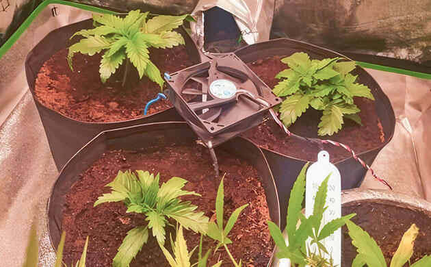 Приток воздуха обеспечивает небольшой кулер от компьютера, обдув – вентилятор на прищепке, а отток осуществляется через вентканалы пассивно. В арсенале основные приборы, как то: термометр, гигрометр, рН-метр, ЕС-метр и все. Поехали налегке!