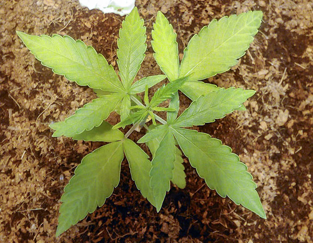 На четвертой неделе рост саженца составлял около 15 сантиметров. Пока он развивается не очень быстро, пол пока не показал, как и признаки предцвета. Поливаю почти каждый день, схема та же – «вода – вода – компот». С четвертой недели начал давать раствор покрепче, добавил CalMag и Silicon по 0,5 мл/л, а Plant Start убрал.