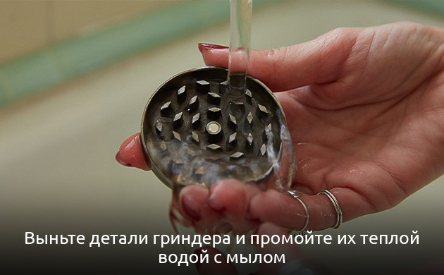 Выньте детали гриндера и промойте их теплой водой с мылом.