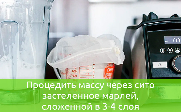 В качестве основы для приготовления молока используется обычная очищенная вода. На один стакан воды берется 4-6 столовых ложек неочищенных семян конопли, которые продаются в лавках здорового питания или просто в супермаркетах с диетическими продуктами. Семена замачиваются на несколько часов (лучше на ночь), после чего промываются в холодной проточной воде и отправляются в чашу блендера. Туда же вливается и вода из расчета 1 стакан на полстакана разбухших зерен. Далее следует тщательно измельчить семена, пока масса не станет однородной. После измельчения жидкость нужно пропустить через сито, застеленное марлей, сложенной в 3-4 слоя, чтобы убрать всю шелуху и гущу. Хранить готовое конопляное молоко следует в холодильнике до 5 суток, однако намного вкуснее оно сразу после приготовления.