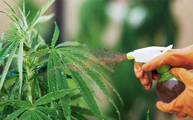 Второй вариант использования – это опрыскивание кроны конопли водным раствором гуминовой и фульвовой кислот. Так молекулы кислот проникают непосредственно в ткани растений. Распыление раствора кислот по листьям и стеблям улучшает общее состояние растений, помогает легче переносить стрессовые ситуации, стимулирует развитие более густой кроны, способствует формированию новых побегов и обильному цветению каннабиса. Раствор выступает в качестве скорой помощи в случае засухи, водного или светового стресса, нападения вредителей и других проблем с плантацией.