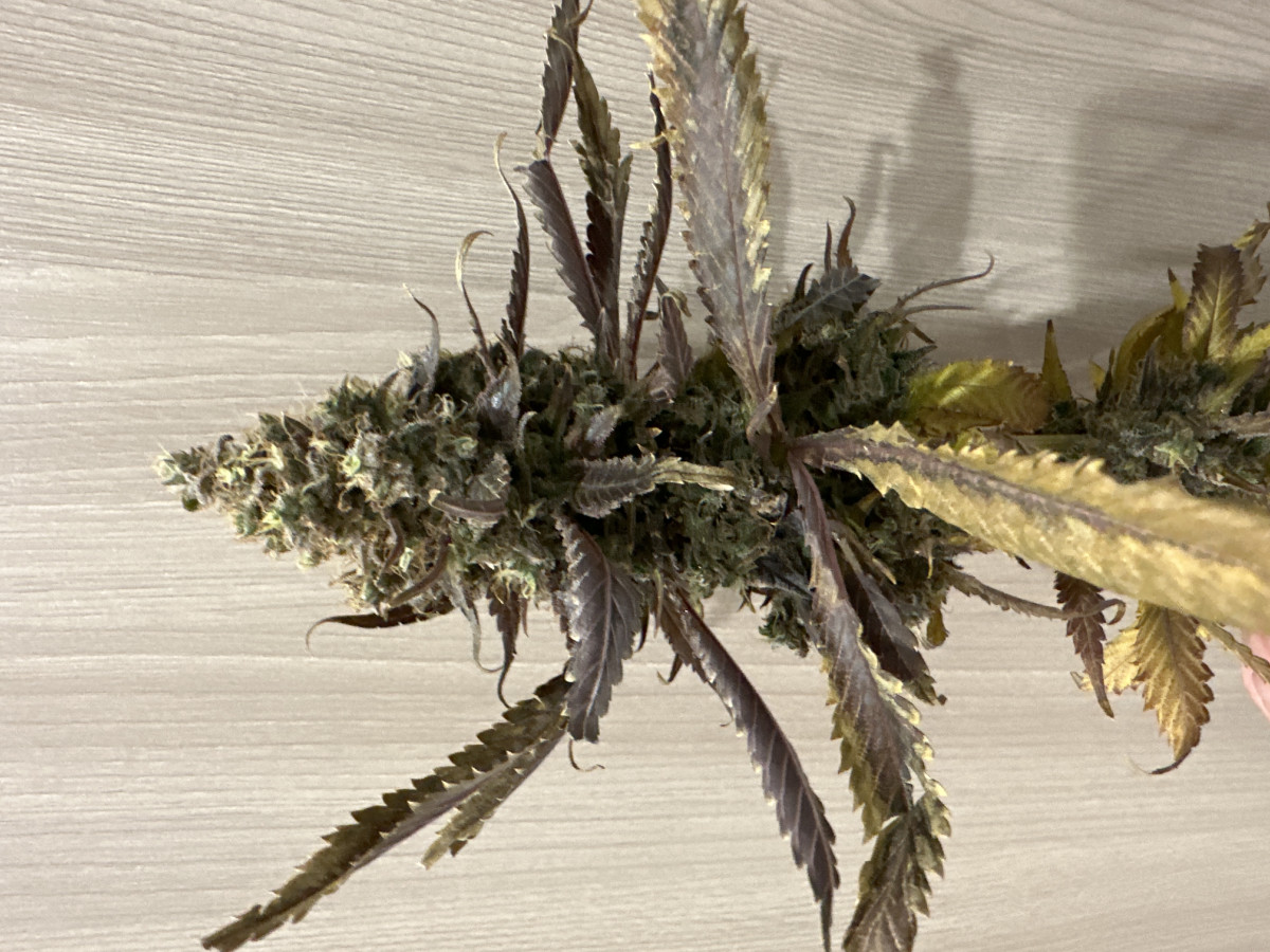 Через месяц перевода на цвет отключили отопление и влажность поднялась до 60%, плюс за три-четыре недели до харва зарядили постоянные дожди которые поднимали в комнате до 70% и в боксе соответственно выше 90%. Уже опасался что заведется плесень, ибо гребаный китайский вентилятор на обдув сдох, пришлось быстро ставить USB кулер из под ноутбука, слабенький ветерок хоть был и ладно. За неделю-две до предполагаемого харва сдох ёще и канальный вент на вытяжке, еле дождался 70% процентов коричневых пестиков и срезал пока плесень не началась, от греха подальше. Под микроскопом трихомы в основном были мутные и немного светлых, только на паре шишек заметил 1-2 янтарных.