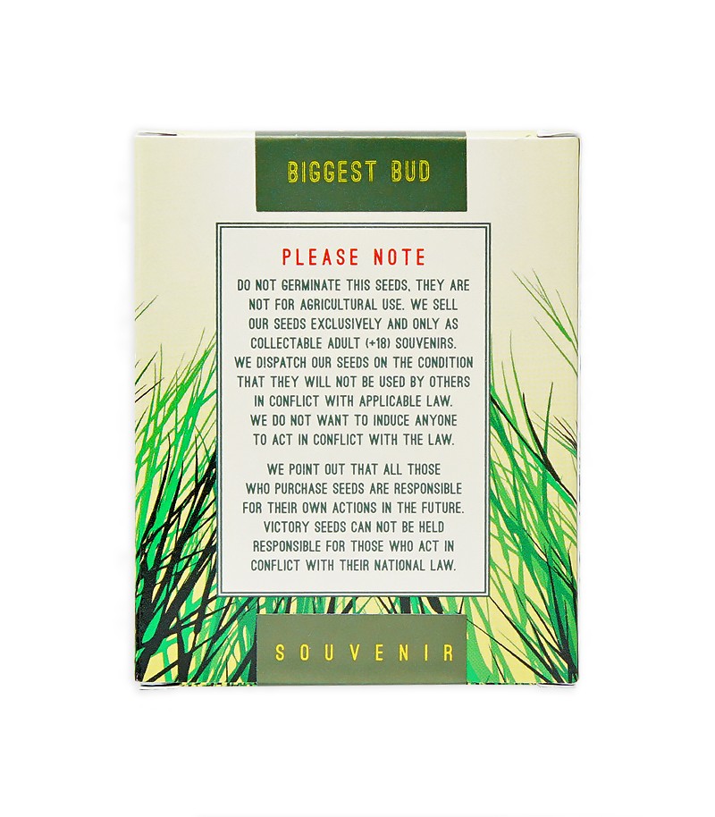 Семена конопли Biggest Bud fem от Victory Seeds вырастают в большие высокоурожайные растения, которые уже давно стали любимцами коммерческих гроверов. Они формируют большие смолистые соцветия, отцветающие за 7-8 недель. Шишки приносят убойный индичный стоун эффект, разбавленный легким сативным хаем.
