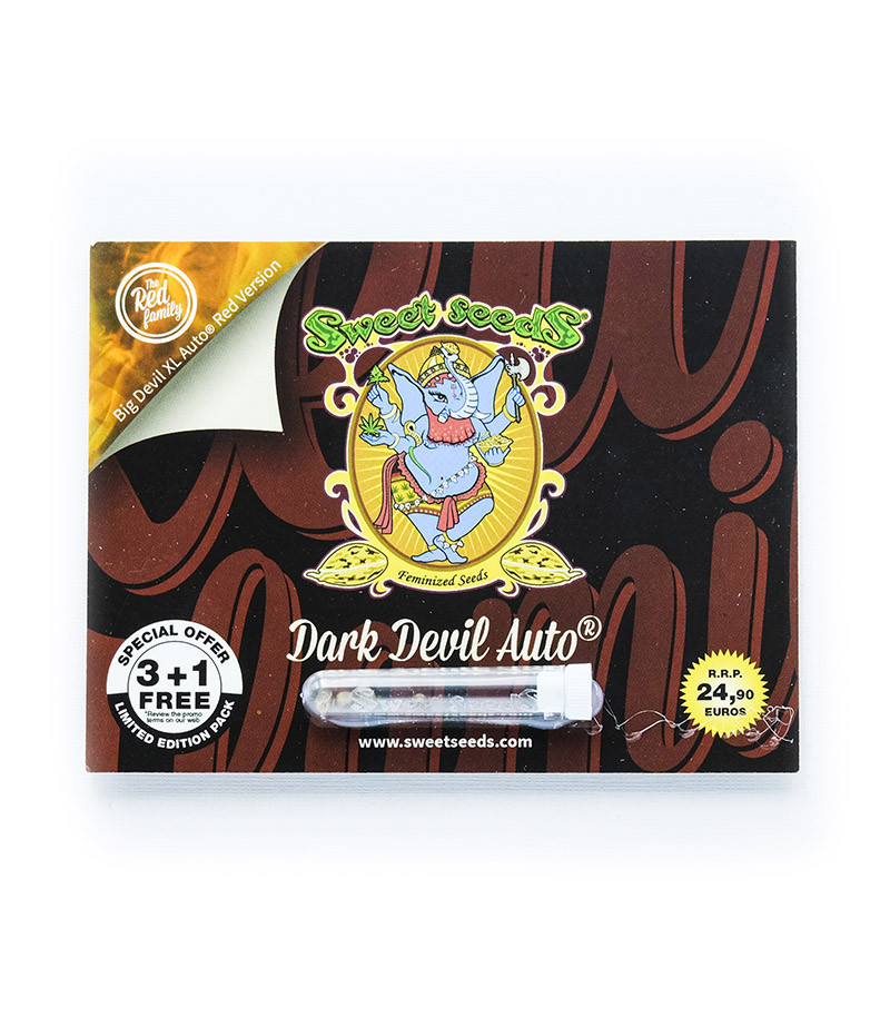 Dark Devil Auto – настоящее произведение селекционного искусства, созданное бридерами из Sweet Seeds совместно с сидбанком Buddha Seeds. Взяв мощнейшую силу, быструю динамику роста и большие размеры оригинального Big Devil XL, к ним решили добавить генов экзотических растений марихуаны, произрастающих в приграничных горных районах Афганистана. Это позволило добиться ещё более ранних сроков цветения, добавило стойкости, а также придало листьям и соцветиям "Тёмной дьяволицы" прекрасный фиолетово-пурпурный цвет. Вкус и аромат при этом стали ещё ярче и слаще.