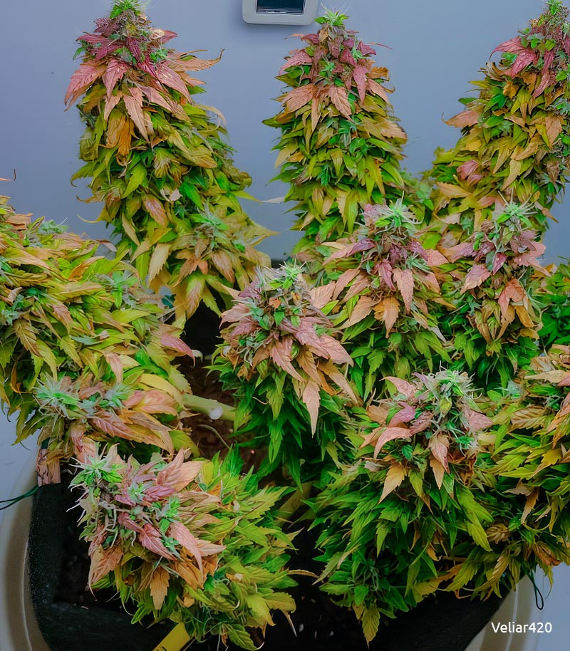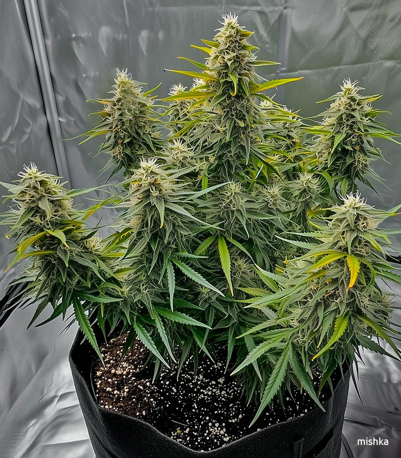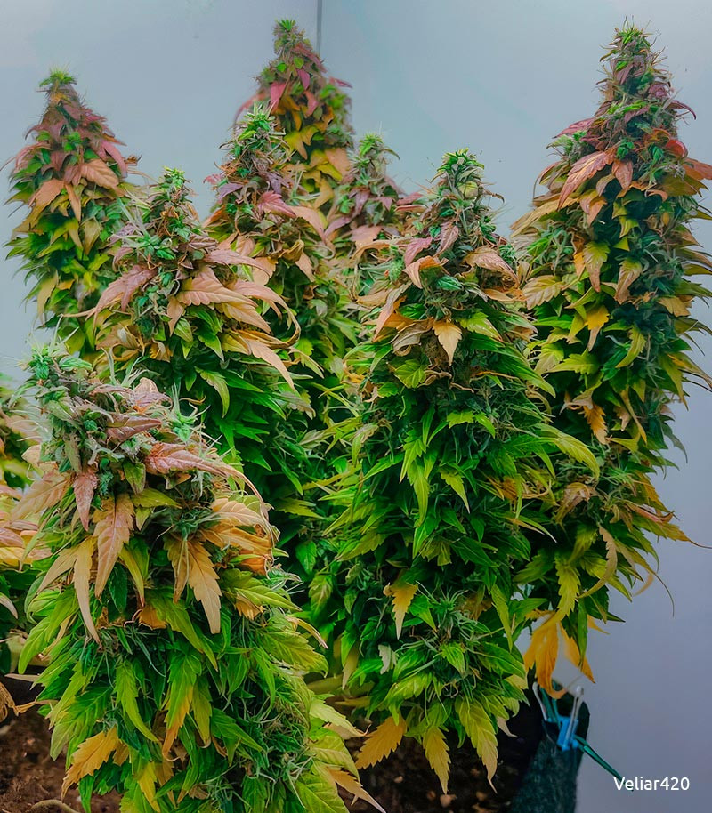 На финальной стадии цветения растения испускают насыщенный, резкий аромат. Тут и сладость, и земля, и пряные восточные нотки – в сумме это делает запах очень выразительным, поэтому в закрытых помещениях без угольного фильтра не обойтись. Полный жизненный цикл составляет всего 49–56 дней. В помещении урожайность достигает 500–700 г/м², а на улице – от 50 до 150 г/куст. В первую очередь важно обеспечить хорошую вентиляцию и освещение – и Dos-Vi-Dos Auto вас точно не подведёт.