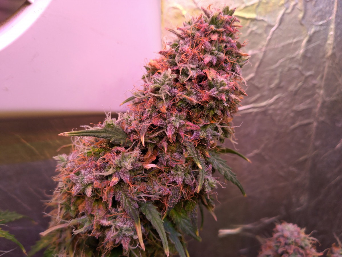Очень обильный на урожай. На фото растишкам 68 дней в фазе активного цветения. Рекомендую всем кто ищет не геморойный в плане ухода сорт и прощающий криворукость начинающих садоводов. Взял 3 семечки все разом взошли месяц росли очень медленно но потом за 2 недели набрали почти 1 метр высоты о очень широко раскинулись в боксе с трудом места хватает а бокс 1,5*1,5*2,1 м. Если нужен хороший урожай без проблем и чательного ухода берите этот сорт.