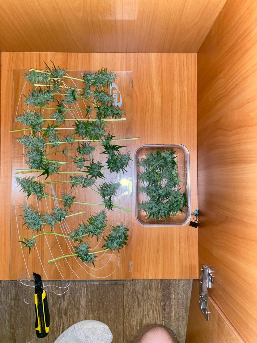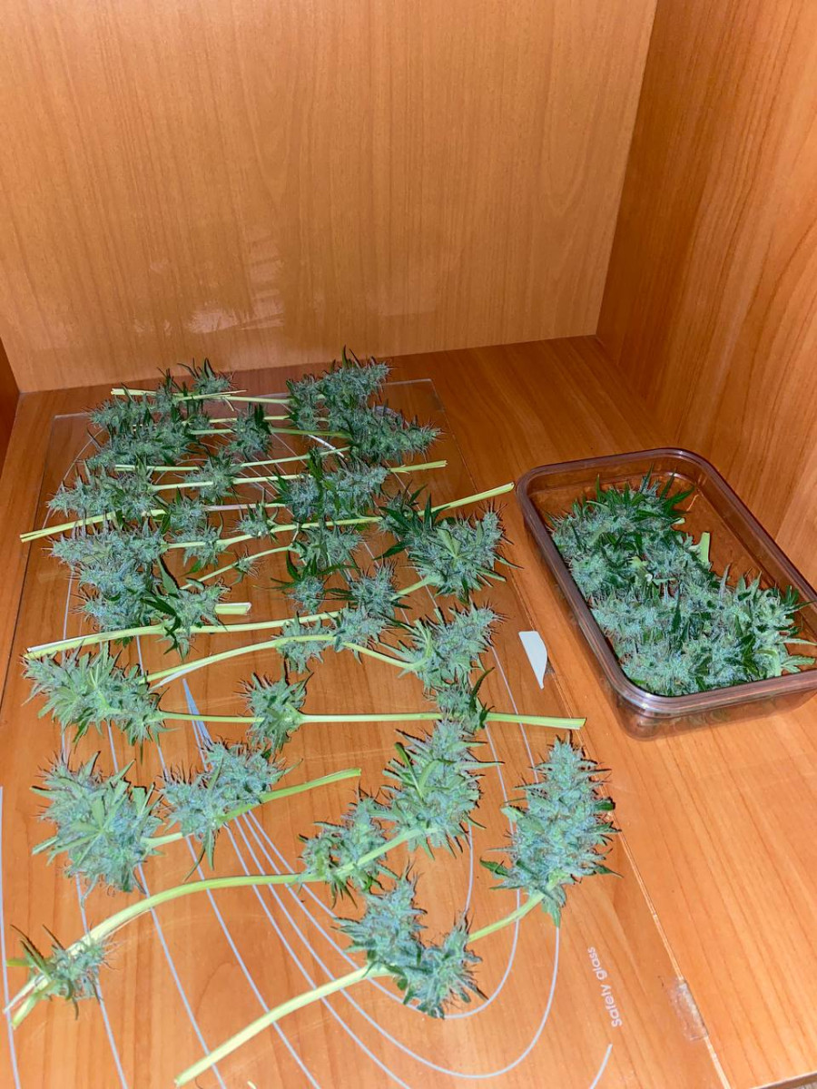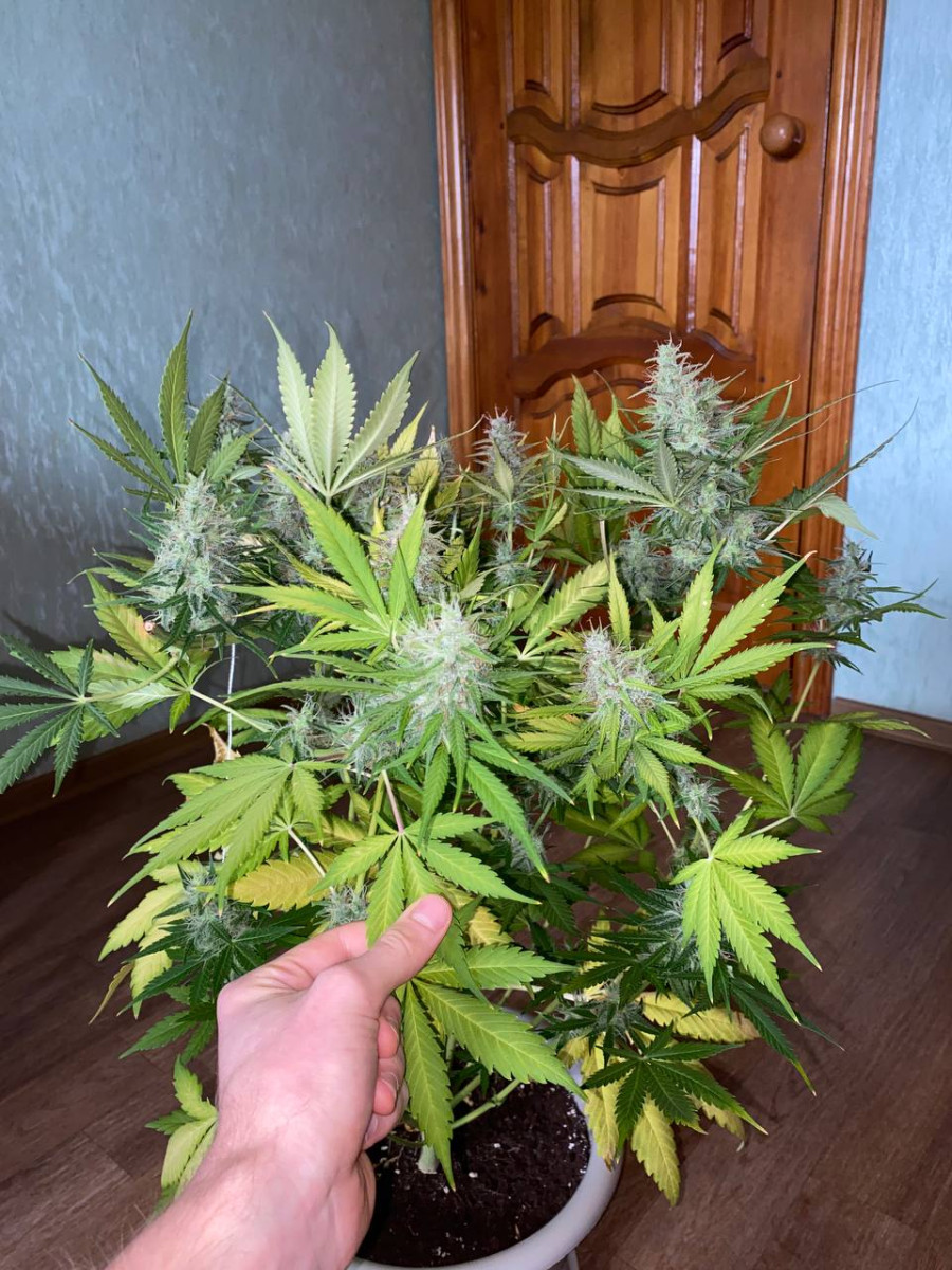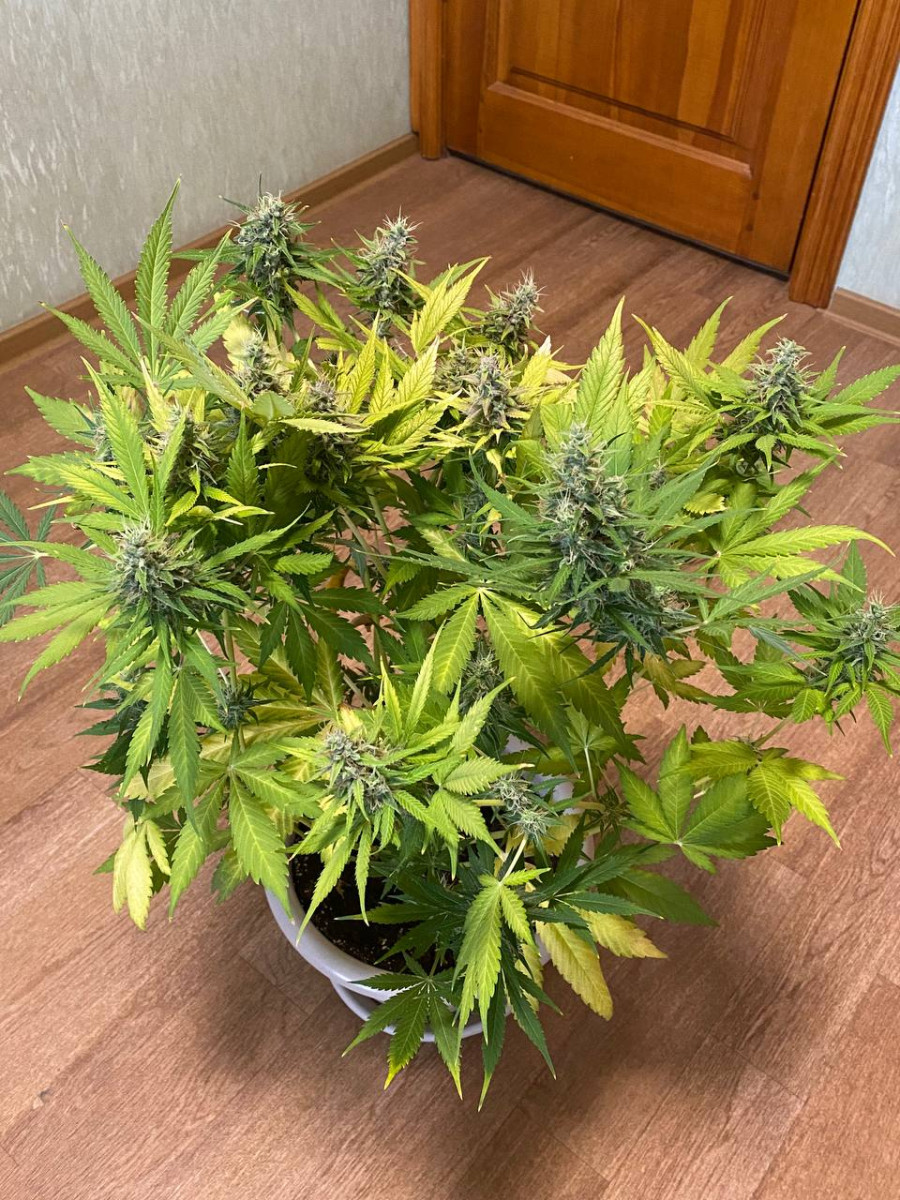 Вообще безпроблемный товарищ, прекрасно рос, никаких проблем не доставлял. Запах все же был, появился в середине цвета и сохранялся до конца. Эффект- просто уроган!!! Так пришибает стоун, что некоторые товарищи даже говорить были не в состоянии ) C бокса 1,2 м2 сняли 610гр.
