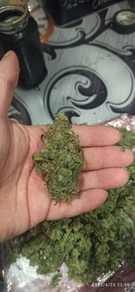 Ну вот наконец подошол к концу мой первый гров. Фотик купил случайно хотел автик. Начал 31.12.21 закончил 26.04.22 г.. на Веги простоял 1 месяц. Лампа небольшая Квантум-борд 30 Вт Samsung lm281b 3000K + Osram SSL 660nm, бокс гроутюб диаметром 45см и высотой 125см. Собрал мокрого 521гр. Сухого вышло 71гр. Шишек и 40гр листвы. До сбора 7,5 гр. Шишек и 20гр. Листвы ушло на пробу. Много не курю так что на диван усаживало мигом. Всем добра