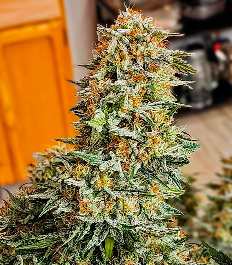 Структура растений Keep Frosted Guava Auto напоминает традиционную рождественскую ель. Вытянутую центральную колу обрамляют более короткие боковые ветви с умеренным количеством яркой листвы. Рост каннабиса обычно не превышает 100 см, при этом урожай в помещении достигает 400 - 500 г с кв. м. Благодаря генам Frosted Skywalker поверхность кустов сверкает не менее ярко, чем дамы на каннской красной дорожке, так что приготовьте солнцезащитные очки, чтобы не ослепнуть от подобного зрелища.