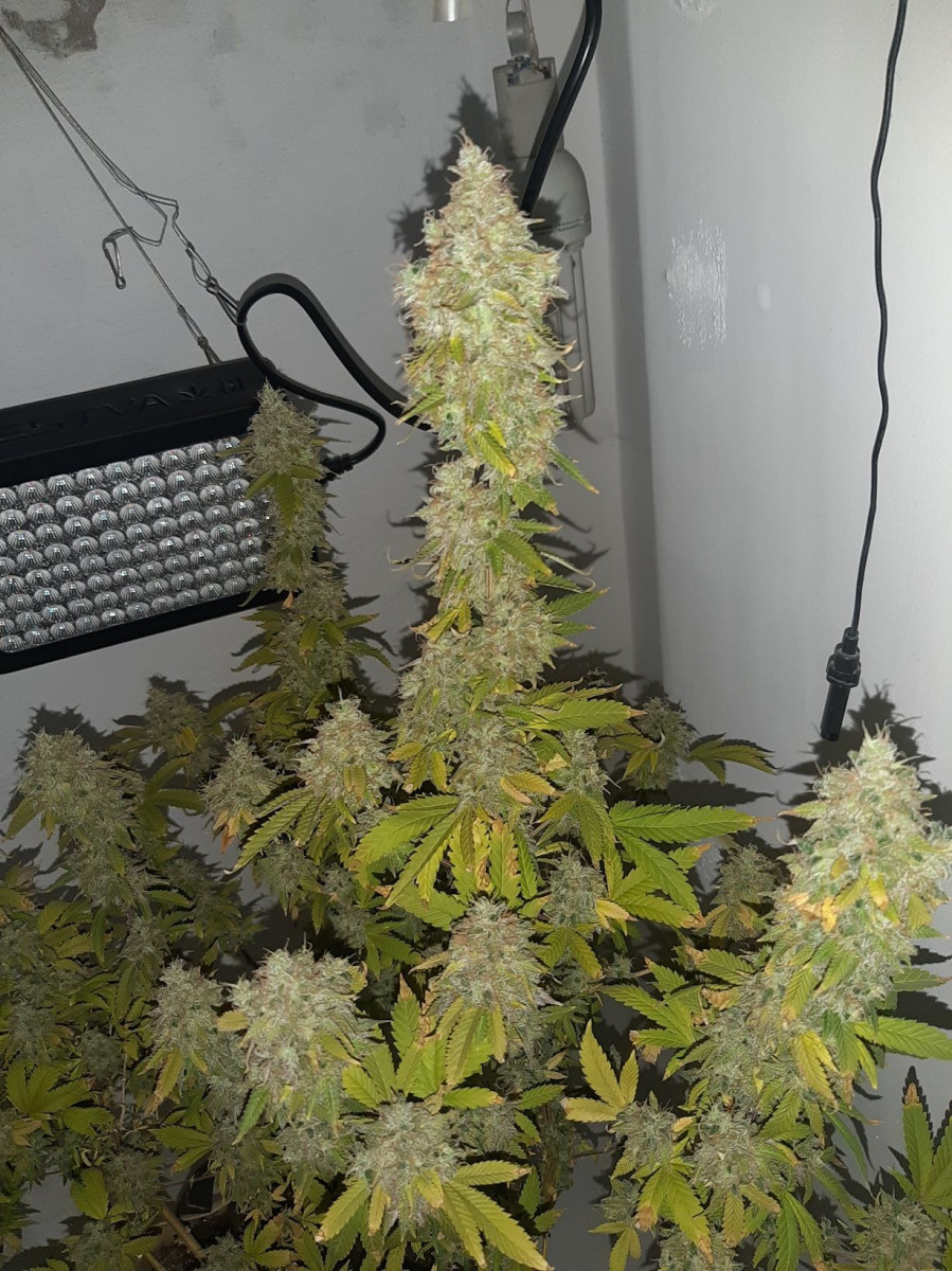 С 12 по 13 недели постепенно снижал концентрацию питательных веществ в растворе, а с 13 недели кусты мои перешли только на воду. В 14,5 недель устроил растихам темную на двое суток, ну а потом харвест был.