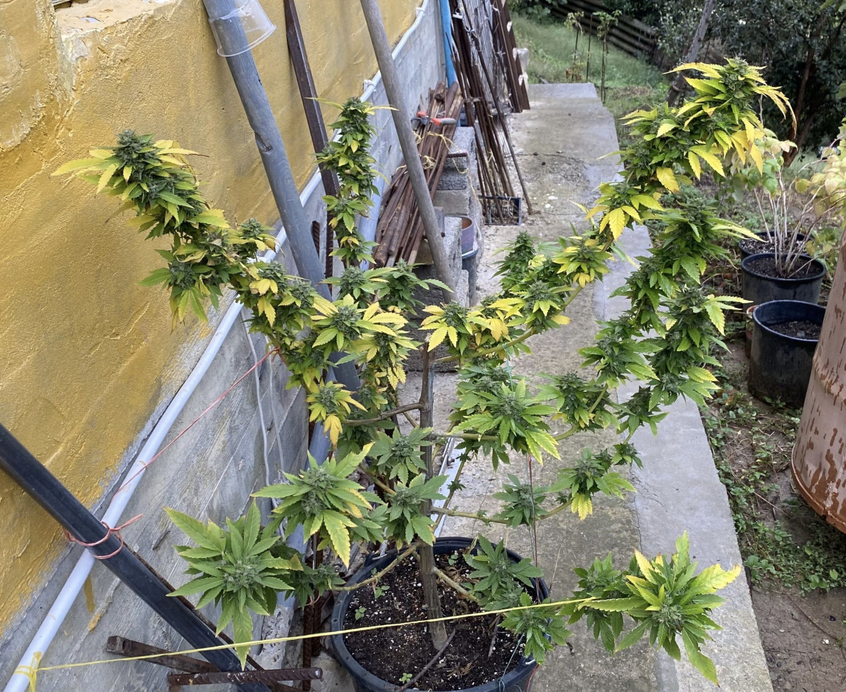 - Общие впечатленияГров-сюрприз, гров-приключение. И это мой первый гров, кстати, знакомый поделился семкой, и думала, что растить буду LSD Auto. Планировался аутдор в горшке. Семку сразу в грунт садила в маленький горшок, росток получила спустя несколько дней, и все шло неплохо. Пересадила в 20 литров, начала выносить на улицу, а потом и вовсе там оставила. Были проблемы, конечно, не без этого: насекомые, перекорм, промывки-обработки. Вроде все нормально, но вот не зацветает и все тут, 2 месяца и елка 130 см, 3 месяца и дерево 160 см… Еще и листва стала желтеть, видать тесно уже корням было, но как перевалить эту махину в другой горшок? А оказалось, что это фотик – LSD fem. И жизнь заиграла новыми красками, потому что никак я не была к такому готова.