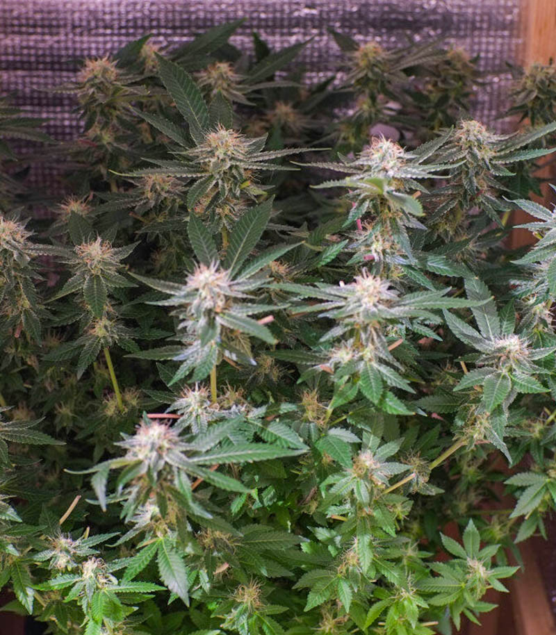 Были и топпинг, и дефолиация, и скрог, и растения прекрасно на все реагировали, развиваясь шикарно. Стойкие и крепкие, можно сказать, что проблем особо не было. Разве что только на веге пара кустиков как-то отставали, особенно один был маленьким. Однако все выровнялось и уже буквально к 6-7 неделям мой бокс с гидроустановкой на 4 посадочных места стал напоминать джунгли. Очень энергичный сорт в плане развития и отклика на все мои манипуляции, и предсказуемый, что немаловажно. Зацвел быстро, уже спустя неделю после перевода в режим 12/12.