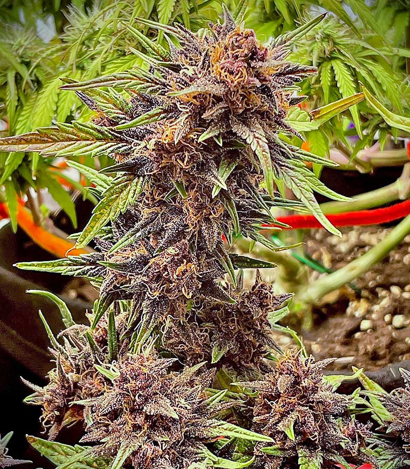 Благодаря такой структуре кусты приносят обильный урожай, который в естественных условиях достигает показателя в 350-550 г/куст. Они также отлично реагируют на различные техники выращивания, принося до 550 г урожая с 1 м² рабочей площади. Сами соцветия вырастают крупными и смолистыми, выделяясь завораживающими взгляд розовато-фиолетовыми оттенками и яркими темно-оранжевыми пестиками, торчащими во все стороны. Они очень богаты на терпены, а потому сильно пахнут во время цветения, из-за чего рекомендуется еще на старте позаботиться об установке угольного фильтра. Также для достижения максимальной производительности рекомендуется держать растения на стадии вегетации не менее 5 недель.