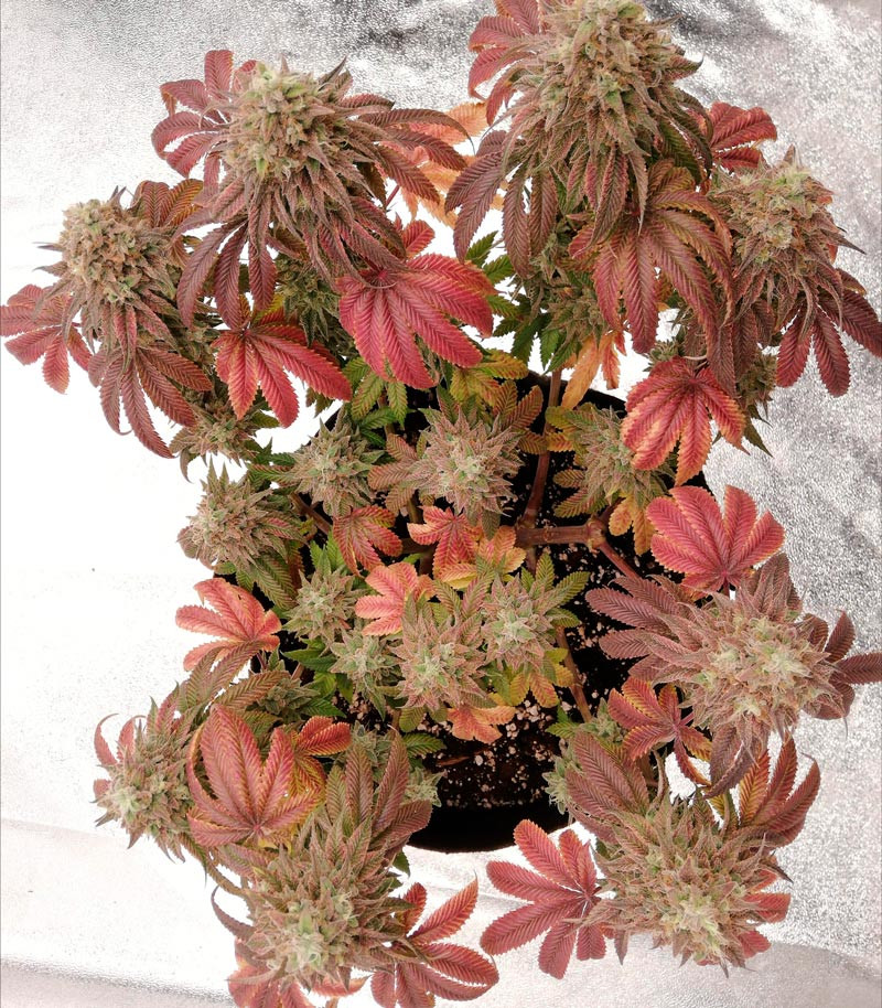 В открытом грунте куст может вытянуться до впечатляющих двух метров. В гроубоксе габариты будут скромнее. После четырех недель вегетации высота куста составит 110-120 см, что вполне подходит для средних оранжерей. Если же вы хотите уместить растение в самых компактных боксах, то можно использовать небольшие горшки (на 15-20 литров), применять техники LST, SCRoG и периодически проводить дефолиацию. Все это позволит держать размеры растения под контролем. Не бойтесь навредить кусту, он довольно энергичен и жизнелюбив. Также это фотопериодный сорт, а значит, вы можете всегда дать ему немного времени на восстановление.