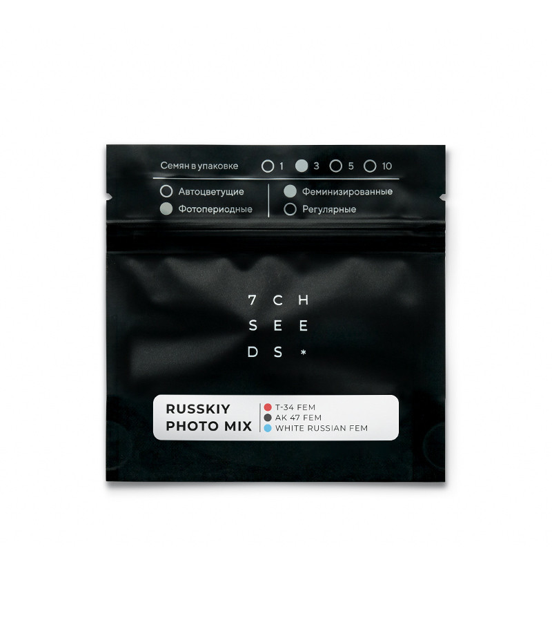 Сидбанк «Семяныч» рад представить вам коллекцию семян конопли Russkiy Photo Mix, в которую входят три проверенных временем неубиваемых фотопериодных сорта – White Russian, Ak 47 и T-34. Их названия и генетика, так или иначе, связаны с Россией, что довольно символично, ведь эти растения обладают сокрушительной мощью, надежной генетической составляющей и высоким уровнем стрессоустойчивости. С ними сможет справиться даже начинающий гровер. Они будут комфортно чувствовать себя в аутдоре практически в любом месте, что существенно расширяет географию их высадки, позволяя жителям регионов с переменчивым климатом получить качественный готовый продукт с богатой вкусоароматической палитрой и убойной силой воздействия. Если вы не уверены в своих силах или проживаете в северной части умеренного климатического пояса, то эти растения как раз для вас!